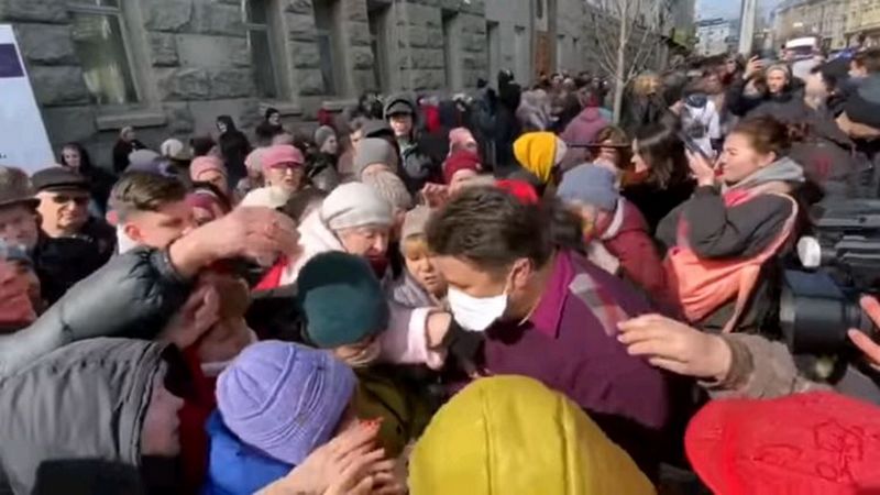На кадрах заметно, что основную часть толпы составляют пожилые женщины.