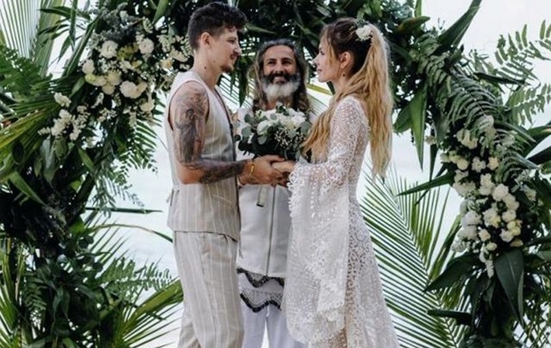 Для знаменательного дня Кочетова выбрала белое кружевное платье итальянского бренда Tina Valerdi. Середа надел легкий льняной костюм. Пара поженилась босиком на пляже под аркой из живых листьев и цветов.
